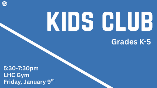 Kids Club is meeting for the first time in 2026 on Friday, January 9th from 5:30-7:30.